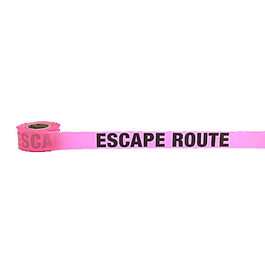 “Escape Route” Glo Pink flag tape is highly visible and is available in 1-1/2′ x 50 yd rolls.
